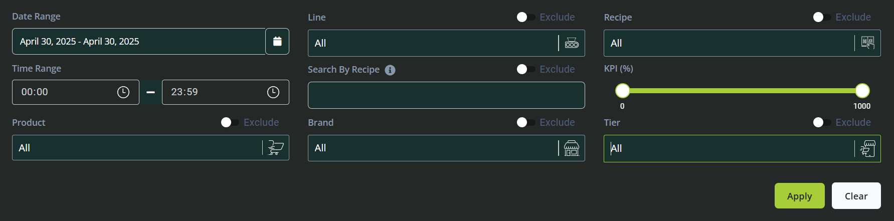 Time Range: Refine your analysis by specific hours or shifts within a day.