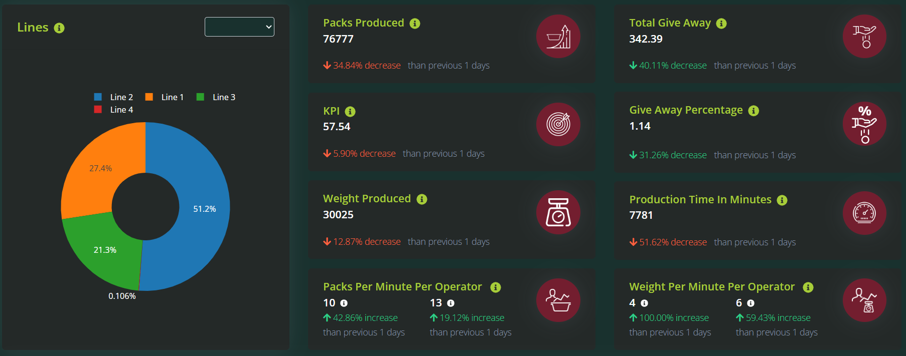 Packs Produced: Displays the total number of packs completed within the selected timeframe.