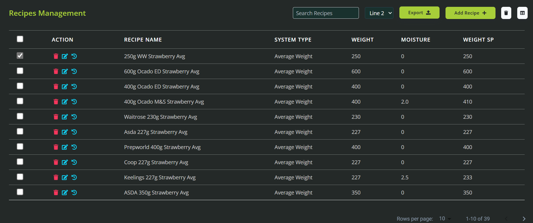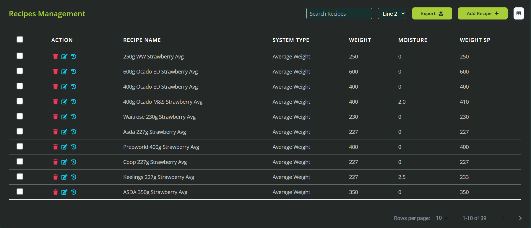 Click "Add" to finalise your recipe, which will now appear at the top of the Recipe Management list.