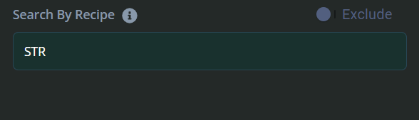 You can search using keywords such as "STR", "400g", or any other relevant identifiers that are part of the recipe name.