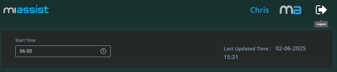 From the MiAssist Home Page, access the Dashboard to view key machine data. At the top, the filter section allows you to select specific start times to focus your analysis on relevant periods, while the last updated timestamp ensures you are viewing the most recent information.