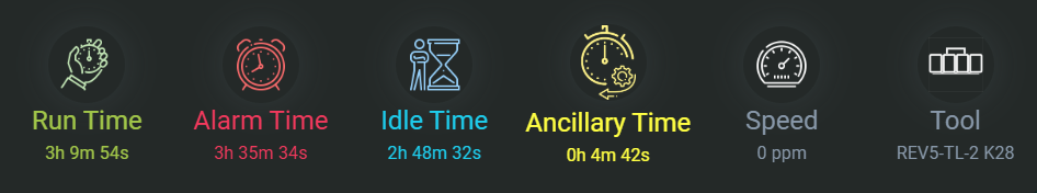 Machine Status: Breakdown of time the machine spent in various states (e.g. running, stopped, idle).