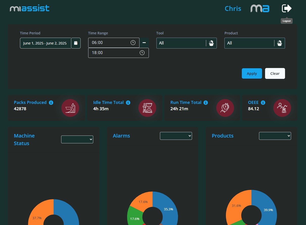Welcome to the MiAssist Dashboard! This guide is designed to help you fully understand and utilise the dashboard to monitor your machines effectively and make data-driven decisions to optimise your production.